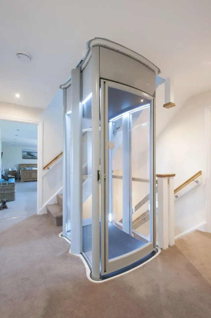 Un ascensor unifamiliar puede instalarse normalmente en un día, una vez finalizada cualquier obra. Quedará encantado con su facilidad de uso. Como todos nuestros modelos de ascensores unifamiliares modelos, un Stiltz es independiente y no necesita apoyarse en un muro de carga. Esto quiere decir que no habrá vibraciones fuertes, solo un deslizamiento fluido y silencioso entre planta y planta.