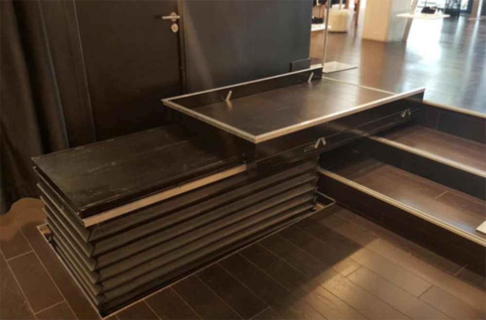Gracias a su innovador sistema de funcionamiento, la EVP-HORIZONTAL se eleva y se traslada de forma horizontal, permitiendo el acceso sin obstáculos. Cuando no está en uso, queda completamente oculta en el rellano inferior, manteniendo la estética del lugar intacta. Además, puede instalarse sin necesidad de modificar el pavimento existente.