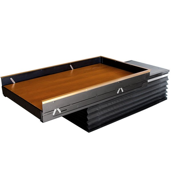 Cuenta con una carga útil de hasta 300 kg, y unas dimensiones de plataforma adaptables (950 x 1540 mm o 1100 x 1540 mm), con una elevación máxima de 780 mm. Su sistema de tracción oleodinámico y alimentación monofásica de 230 V aseguran un desplazamiento suave y fiable.