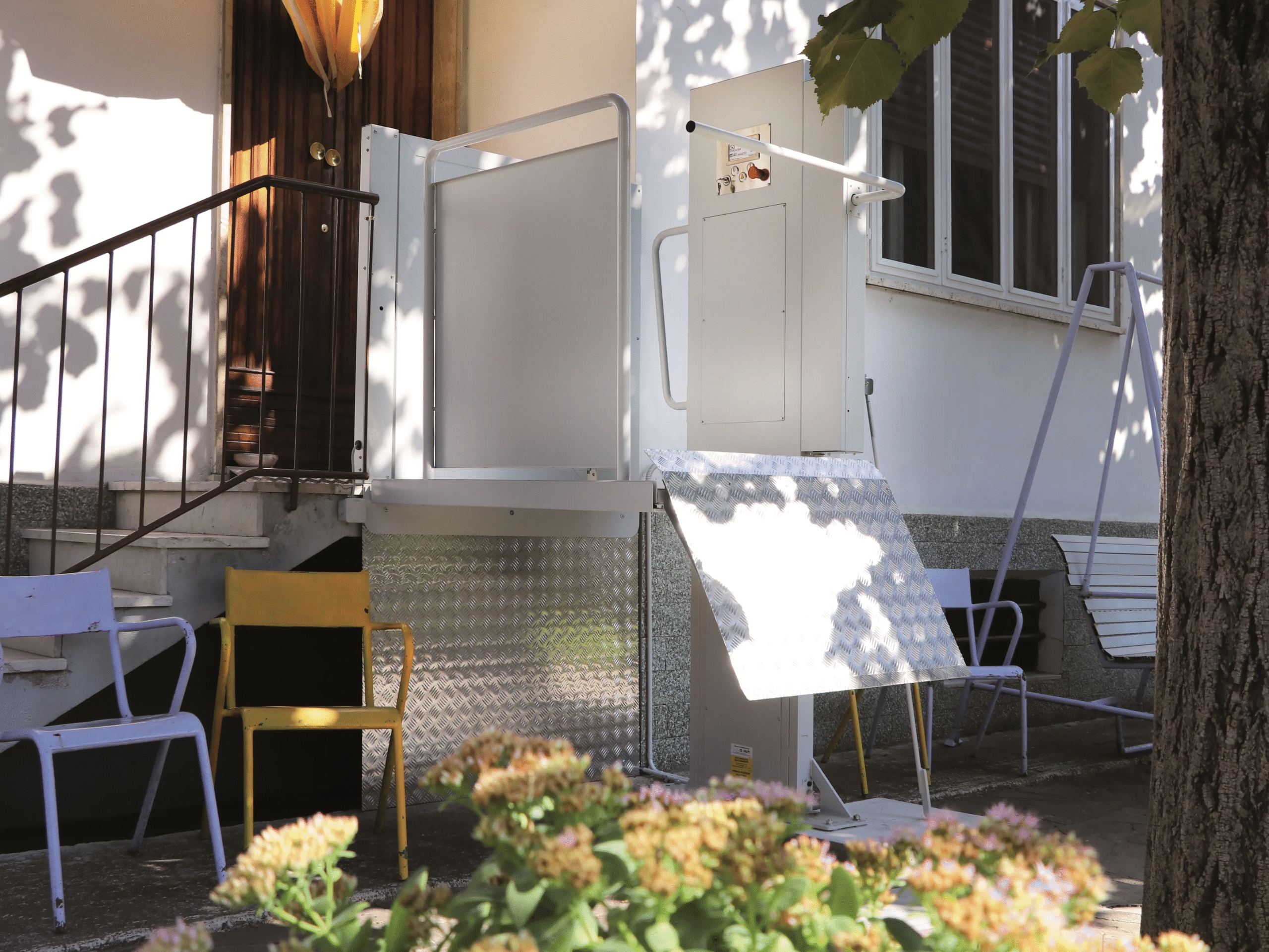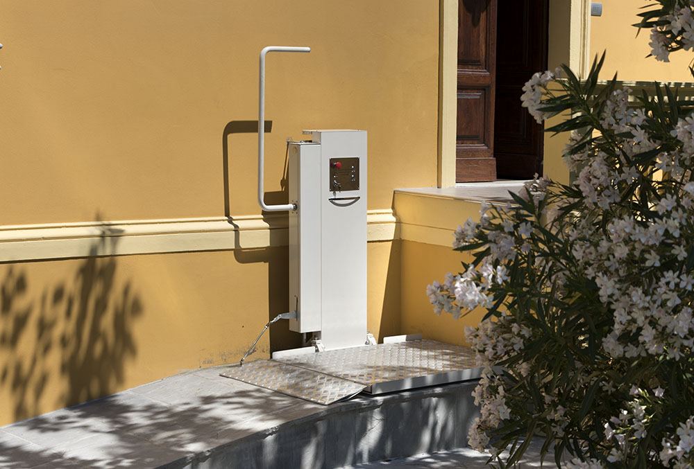 El elevador EVP-I supera desniveles de hasta 1.600 mm, es compacto, seguro y apto para interiores o exteriores. Ideal para personas con movilidad reducida.