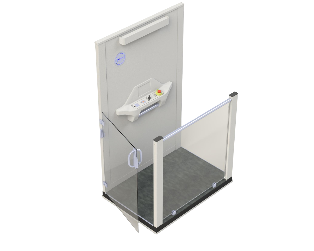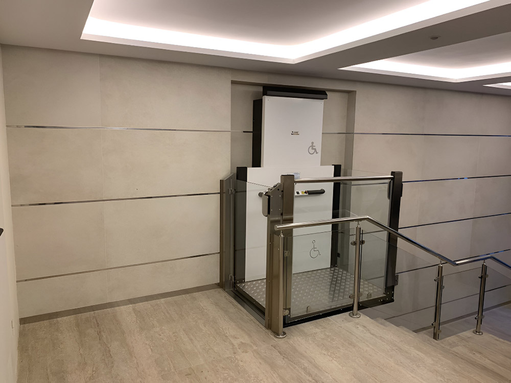 El elevador vertical EVP-R HOME facilita el acceso a edificios para personas con movilidad reducida, con diseño moderno, alta seguridad y opción de garantía de por vida.
