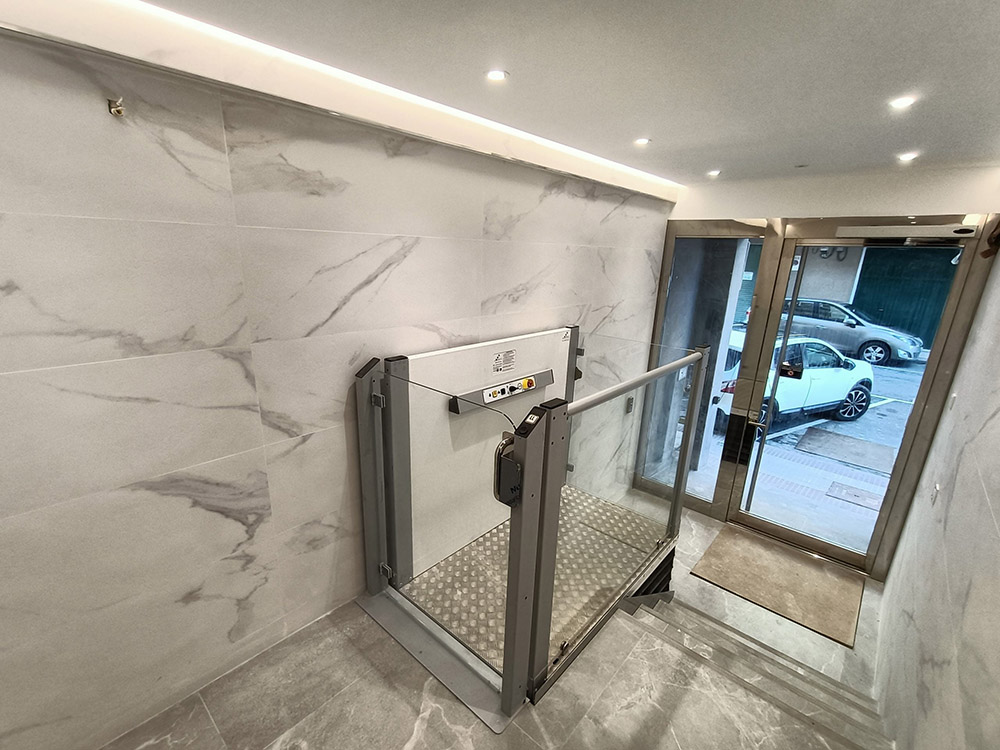 El elevador vertical EVP-X es la solución ideal para salvar desniveles de hasta 1 metro en viviendas, locales comerciales y espacios públicos, especialmente diseñado para personas con movilidad reducida o en silla de ruedas. Con una capacidad de carga de hasta 400 kg, este elevador compacto y robusto cumple con la Directiva de Máquinas 2006/42/CE y los criterios del Código Técnico de Edificación (DB-SUA/2). Incorpora avanzados sistemas de seguridad como cerraduras eléctricas, fuelle de protección perimetral, sistema de rescate por batería, y pulsadores de presión permanente. Su diseño ergonómico, el funcionamiento mediante autómata programable y su instalación sencilla lo convierten en una opción eficiente y fiable para recorridos cortos.