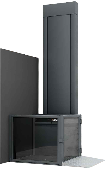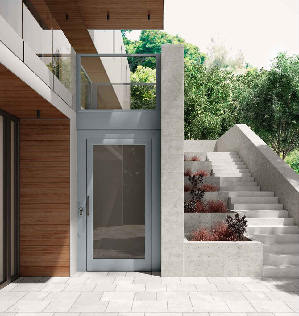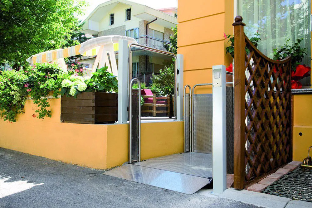 Plataforma EVP-S para accesibilidad universal, ideal en viviendas y comercios. Supera desniveles hasta 1 metro, fácil instalación y segura para silla de ruedas.